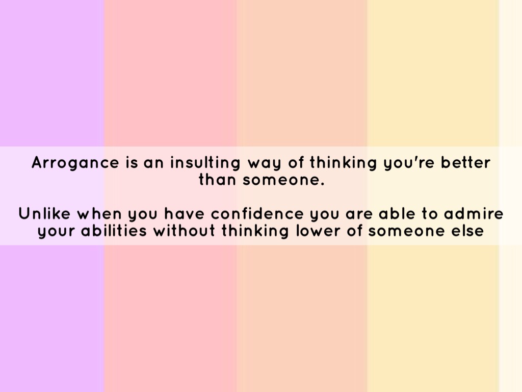 Arrogance is an insulting way of thinking you're better than someone.