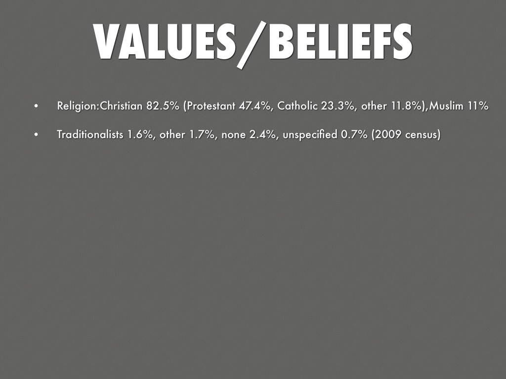 Religion:Christian 82.5% (Protestant 47.4%, Catholic 23.3%, other 11.8%),Muslim 11%