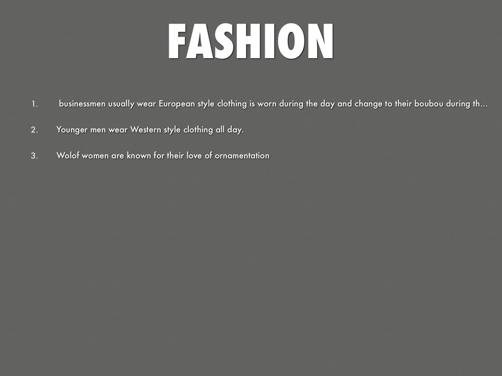businessmen usually wear European style clothing is worn during the day and change to their boubou during the evening.