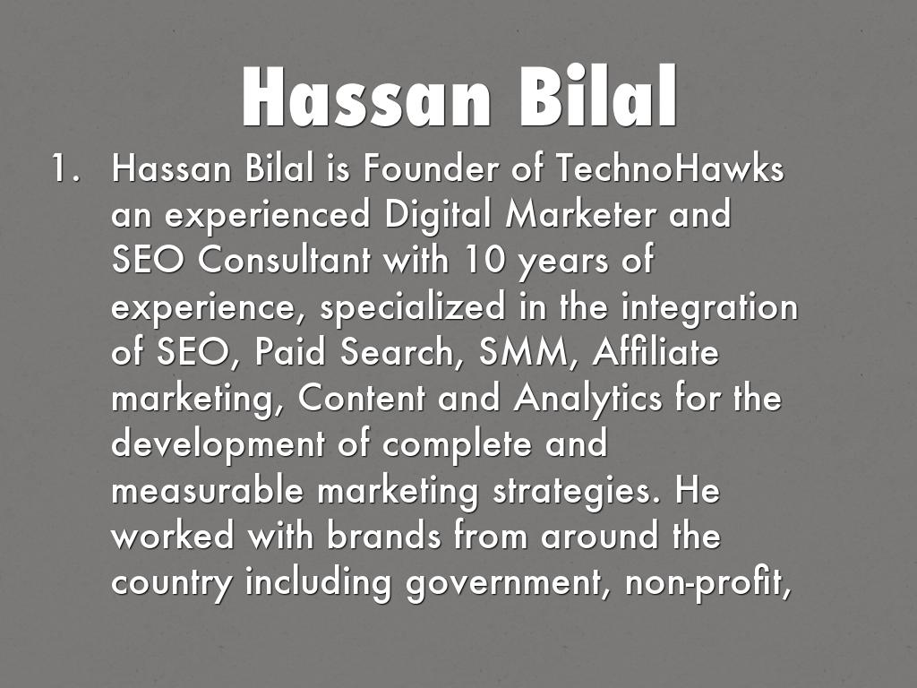 SEO Expert. Hey, I know the best SEO Expert Hassan Bilal. he is one of the best Digital marketers in Islamabad, He will provide the best services for SEO, If you want to learn about each and everything about SEO, you must check out his website. https://www.hassanbilal.net