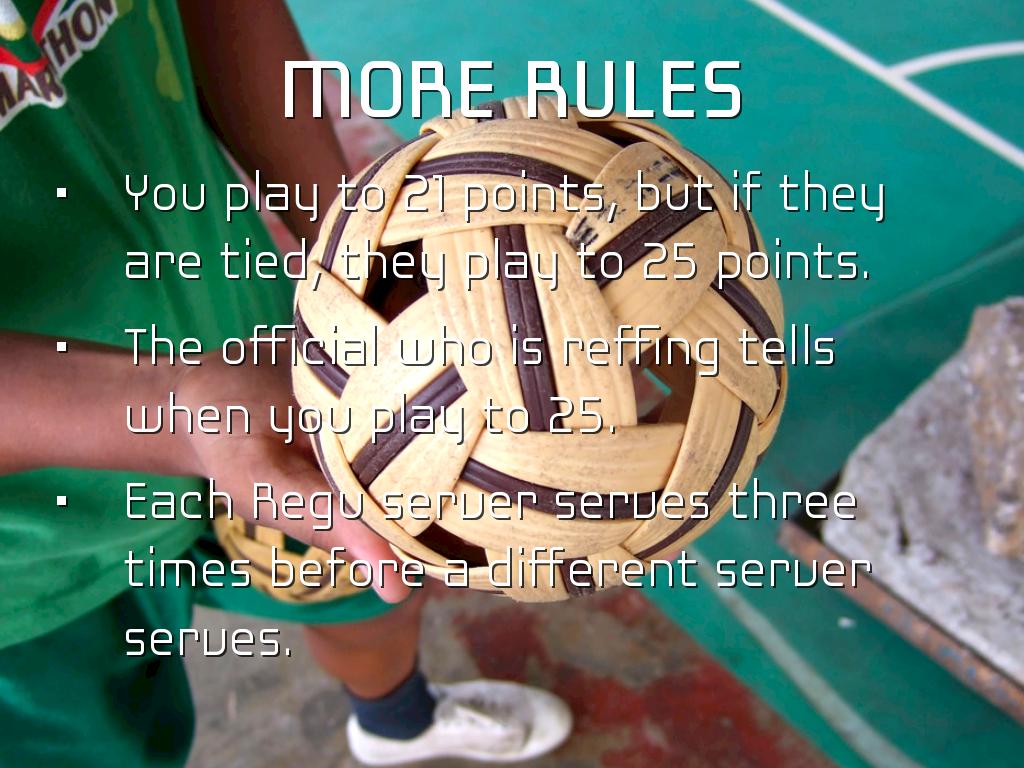 Coin toss to see who starts with the serve, and the other Regu, or team, decides which side they want.