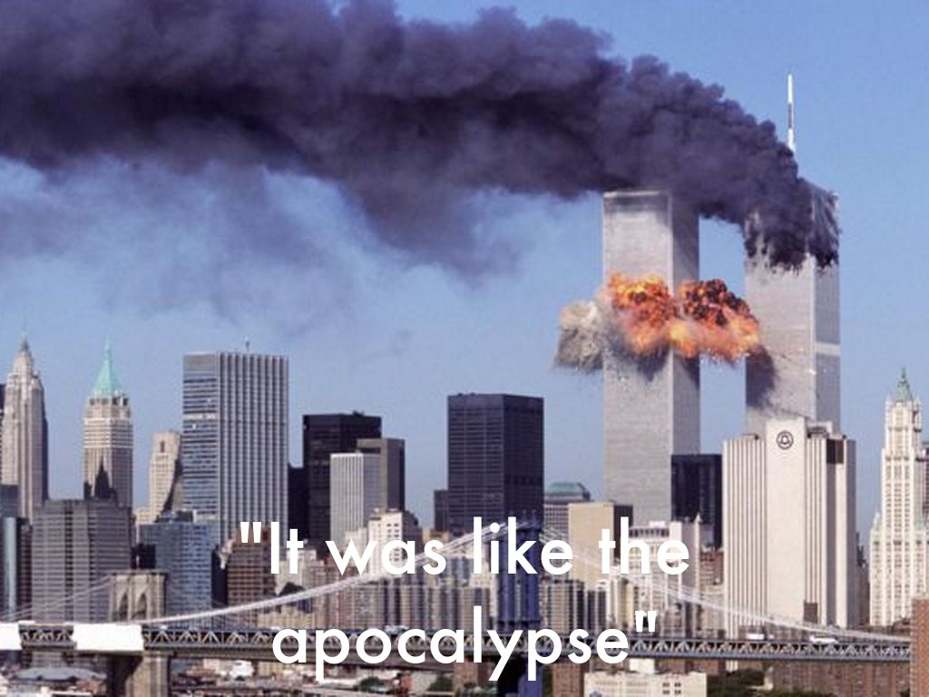 Americans everywhere were in shock when our buildings were hit by planes. It seemed as if we were living in an apocalypse, as this article stated. Nearly 3000 people died that day, between the towers, flight 93, and pentagon.