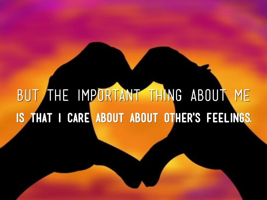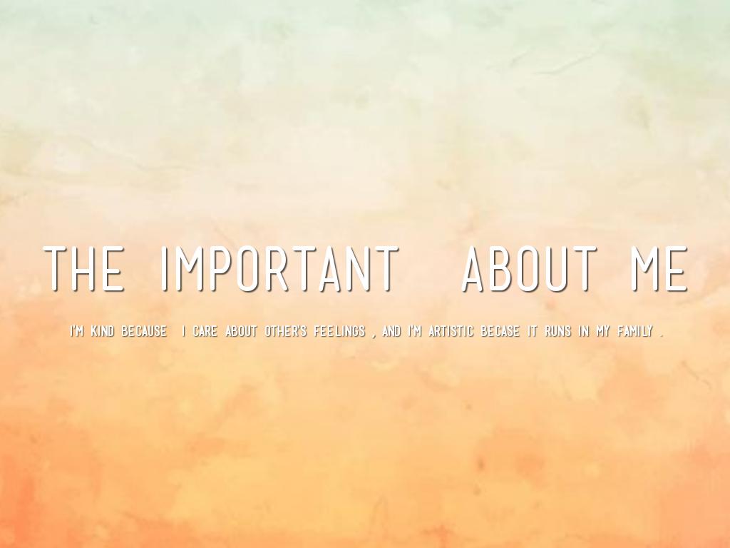 I'm kind because  I care about other's feelings , and I'm artistic becase it runs in my family .
