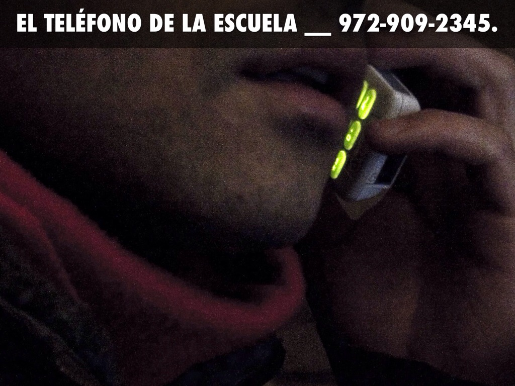 EL TELÉFONO DE LA ESCUELA __ 972-909-2345.