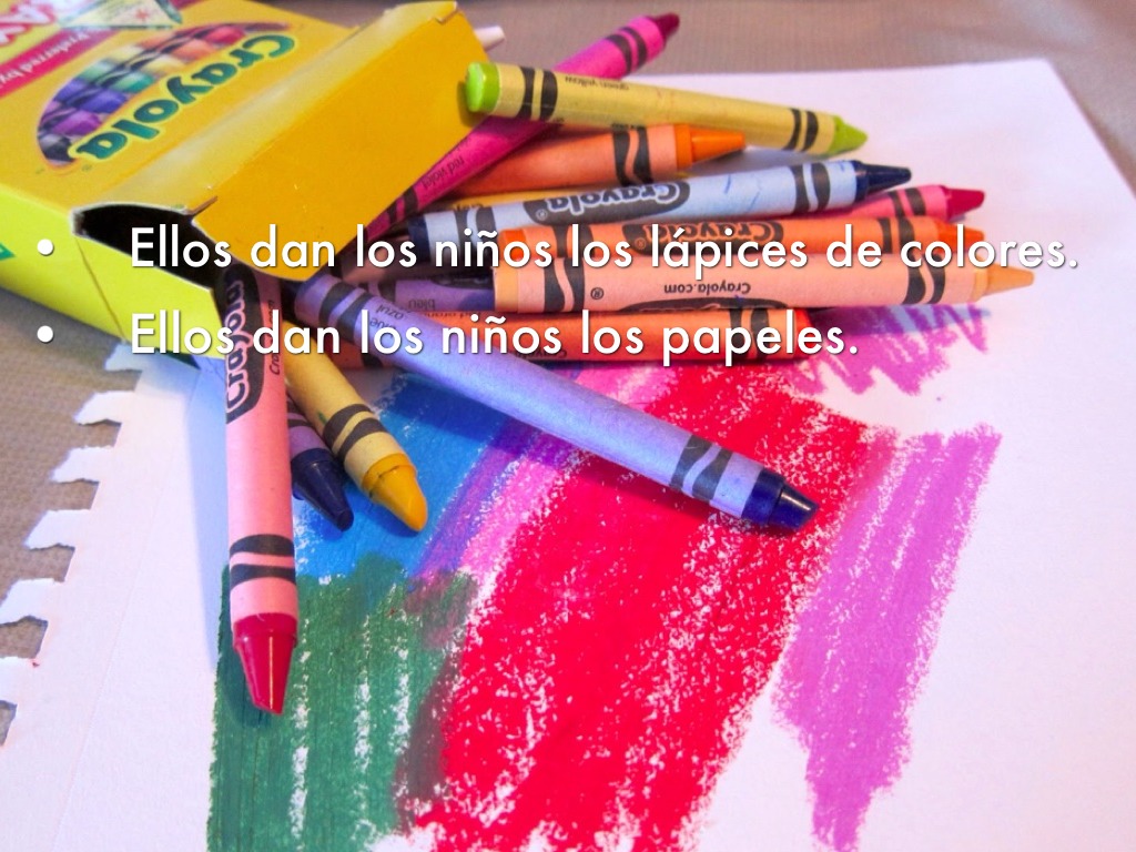Ellos dan los niños los lápices de colores.