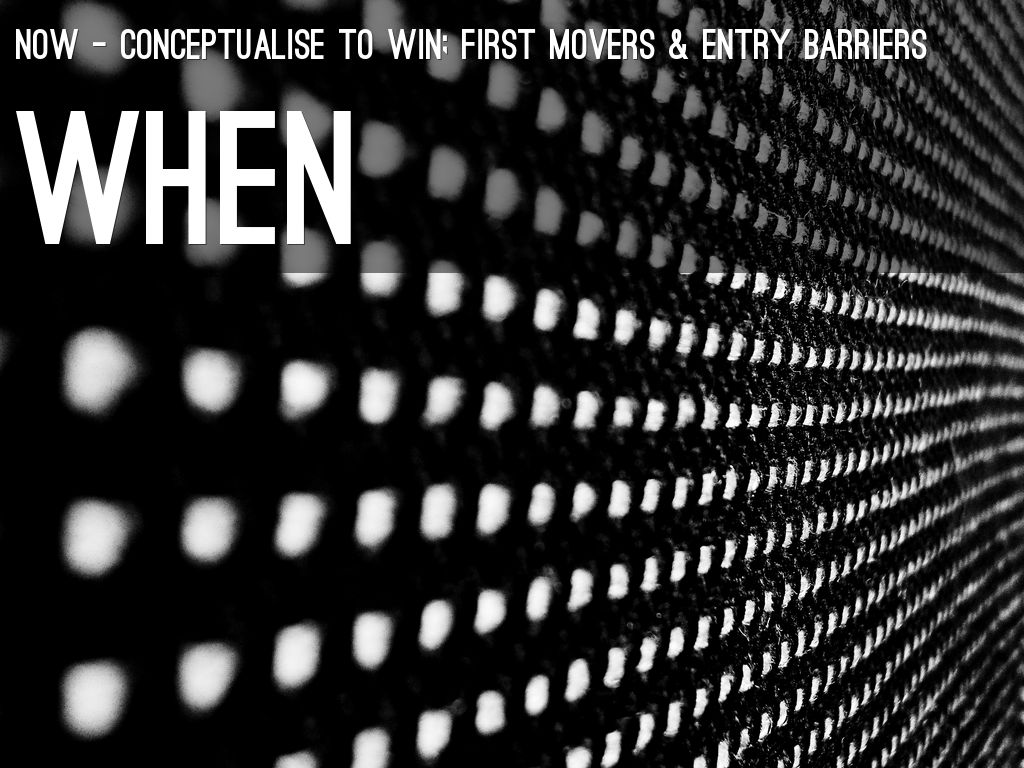 now - conceptualise to win; first movers & entry barriers