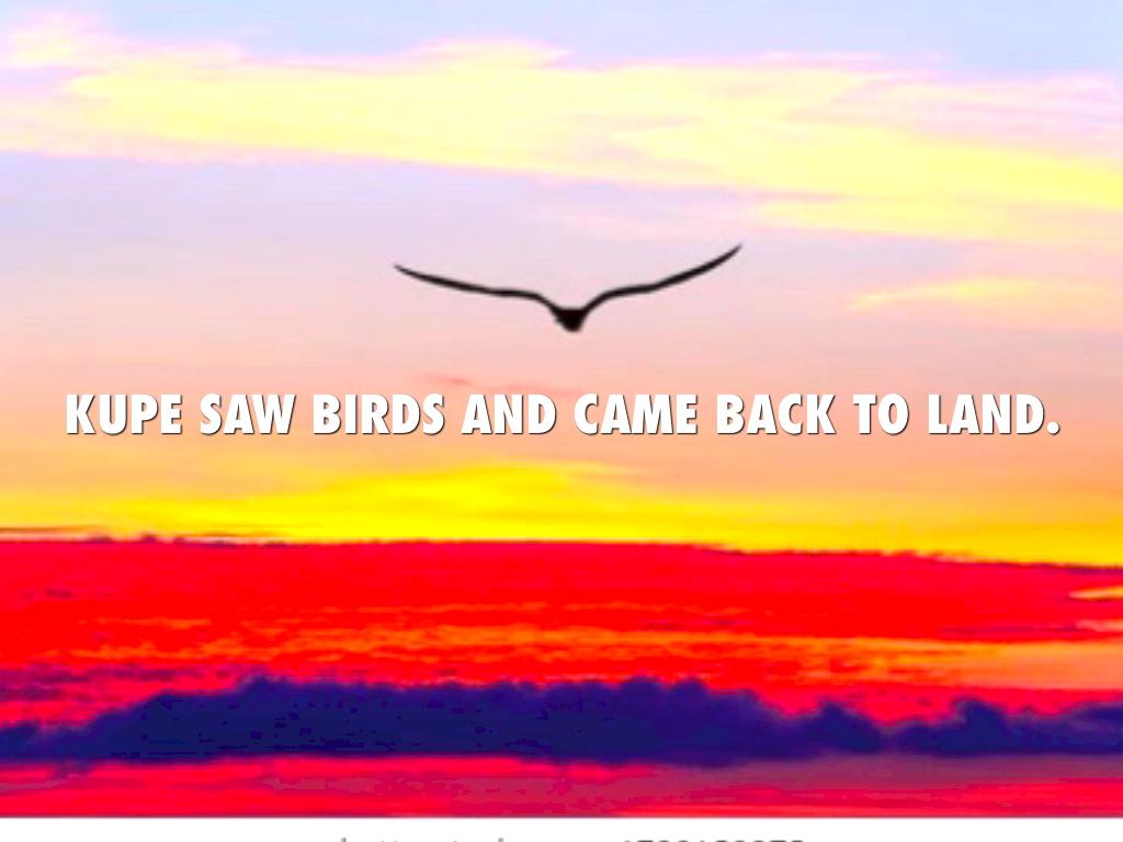 KUPE SAW BIRDS AND CAME BACK TO LAND.
