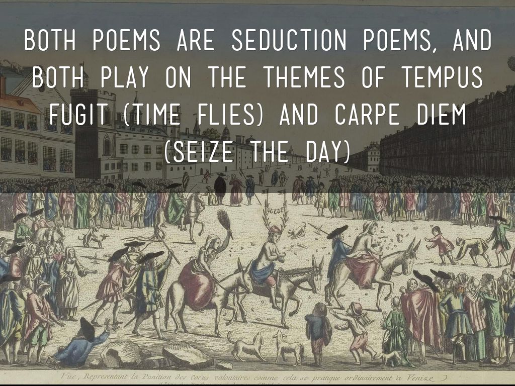 Both poems are seduction poems, and both play on the themes of tempus fugit (time flies) and carpe diem (seize the day)