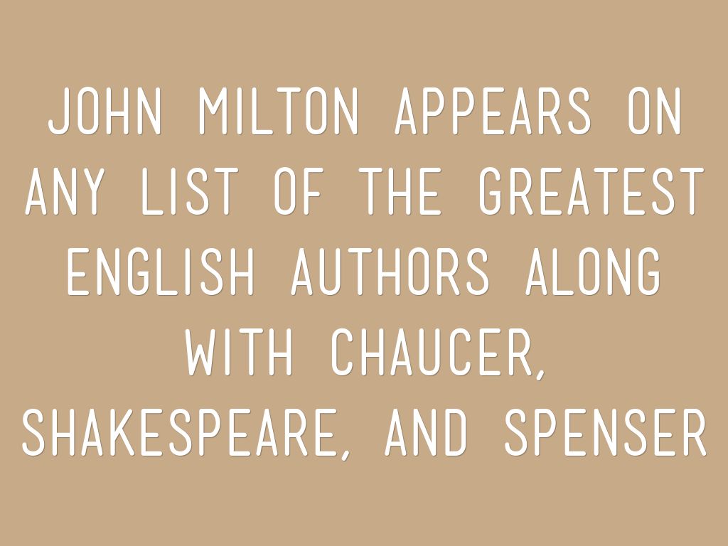 John Milton appears on any list of the greatest English authors along with Chaucer, Shakespeare, and Spenser