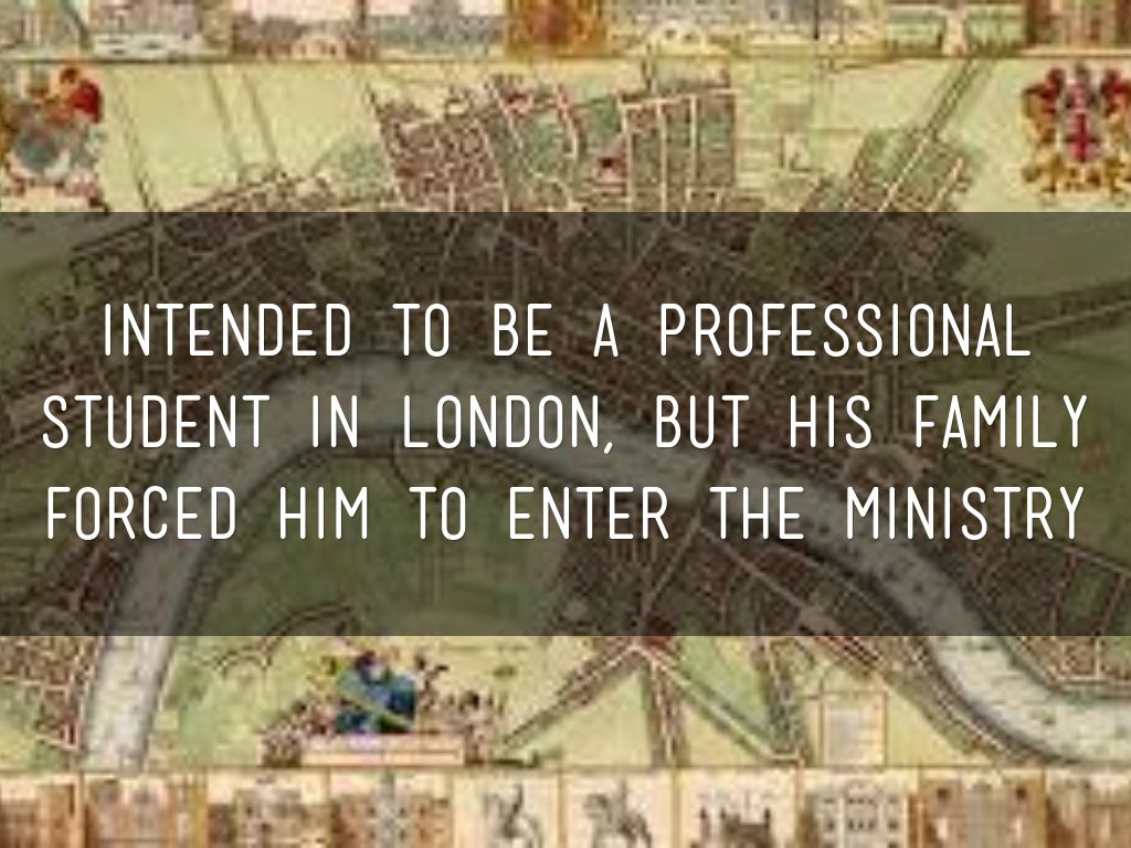 intended to be a professional student in London, but his family forced him to enter the ministry