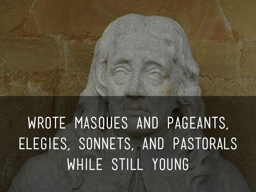 wrote masques and pageants, elegies, sonnets, and pastorals while still young