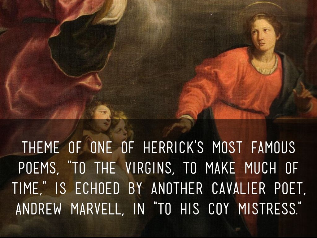 theme of one of Herrick's most famous poems, "To the Virgins, to Make Much of Time," is echoed by another Cavalier poet, Andrew Marvell, in "To His Coy Mistress."