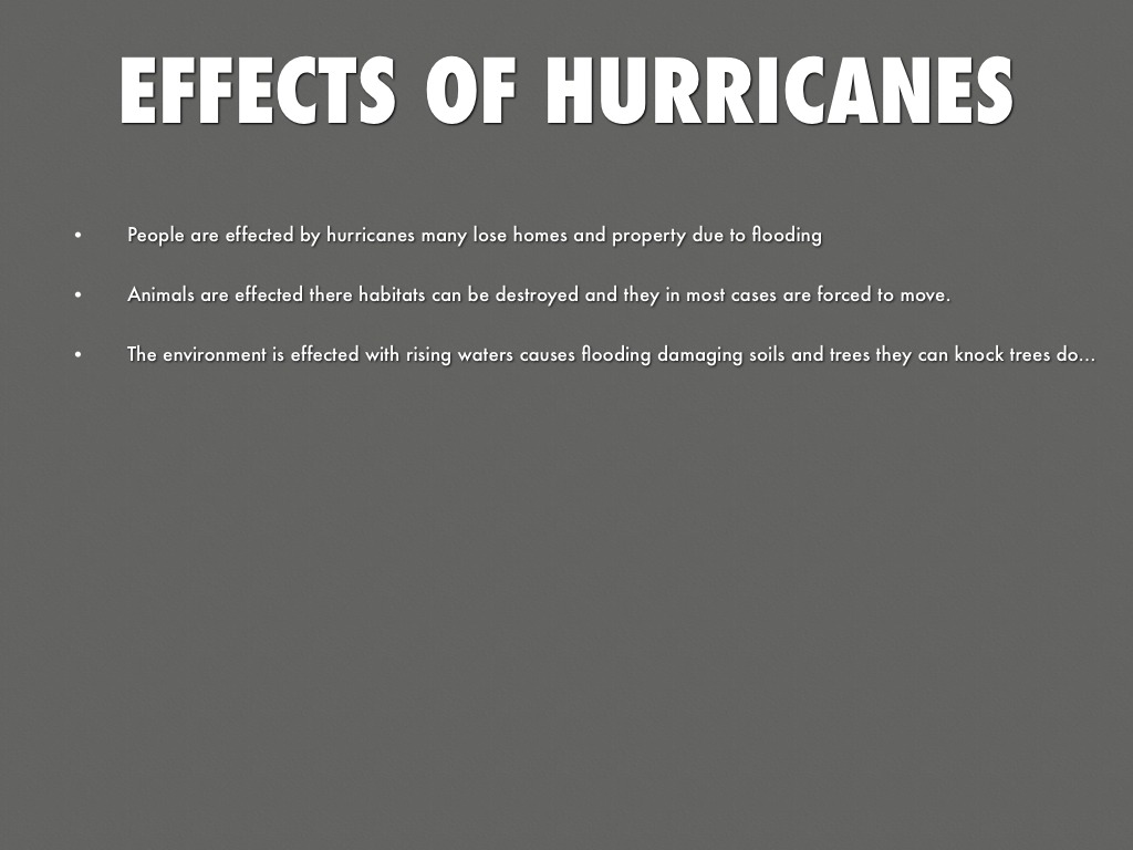 The environment is effected with rising waters causes flooding damaging soils and trees they can knock trees down.
