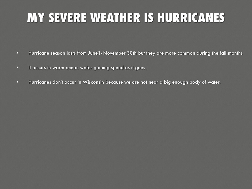 Hurricanes don't occur in Wisconsin because we are not near a big enough body of water.