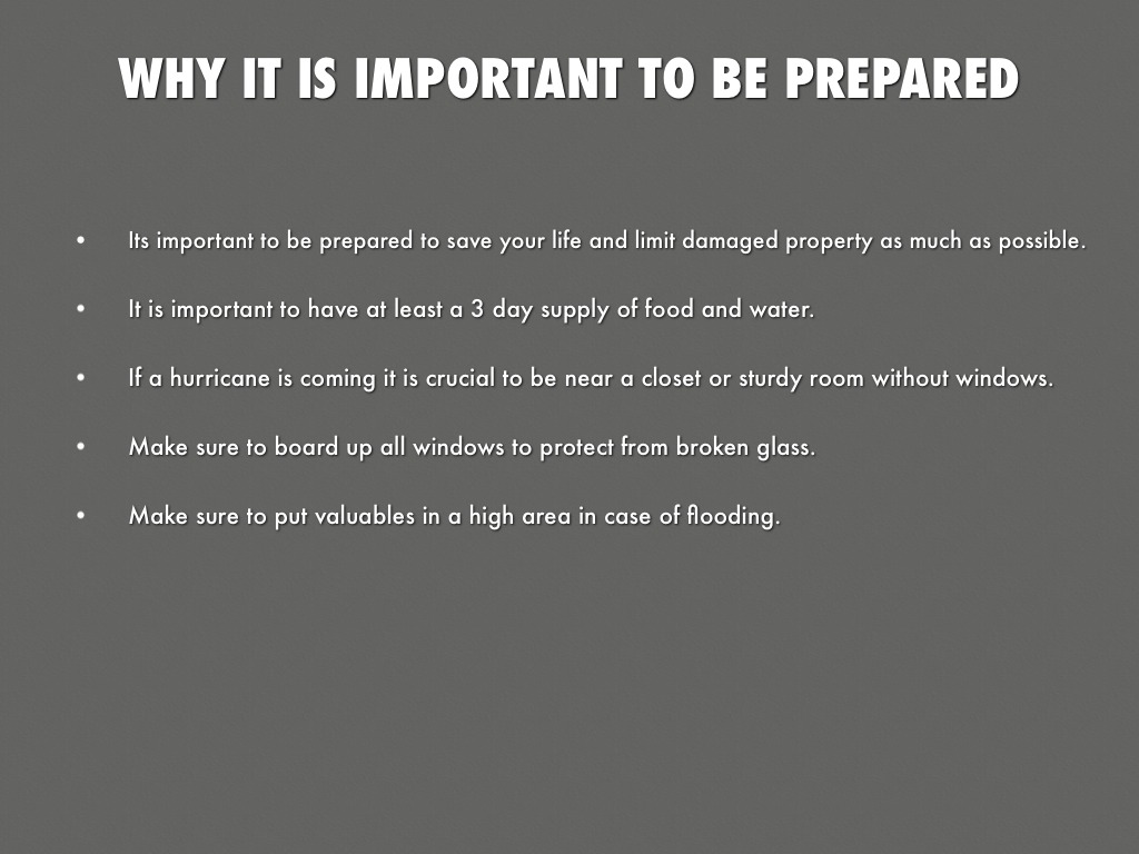 Its important to be prepared to save your life and limit damaged property as much as possible.