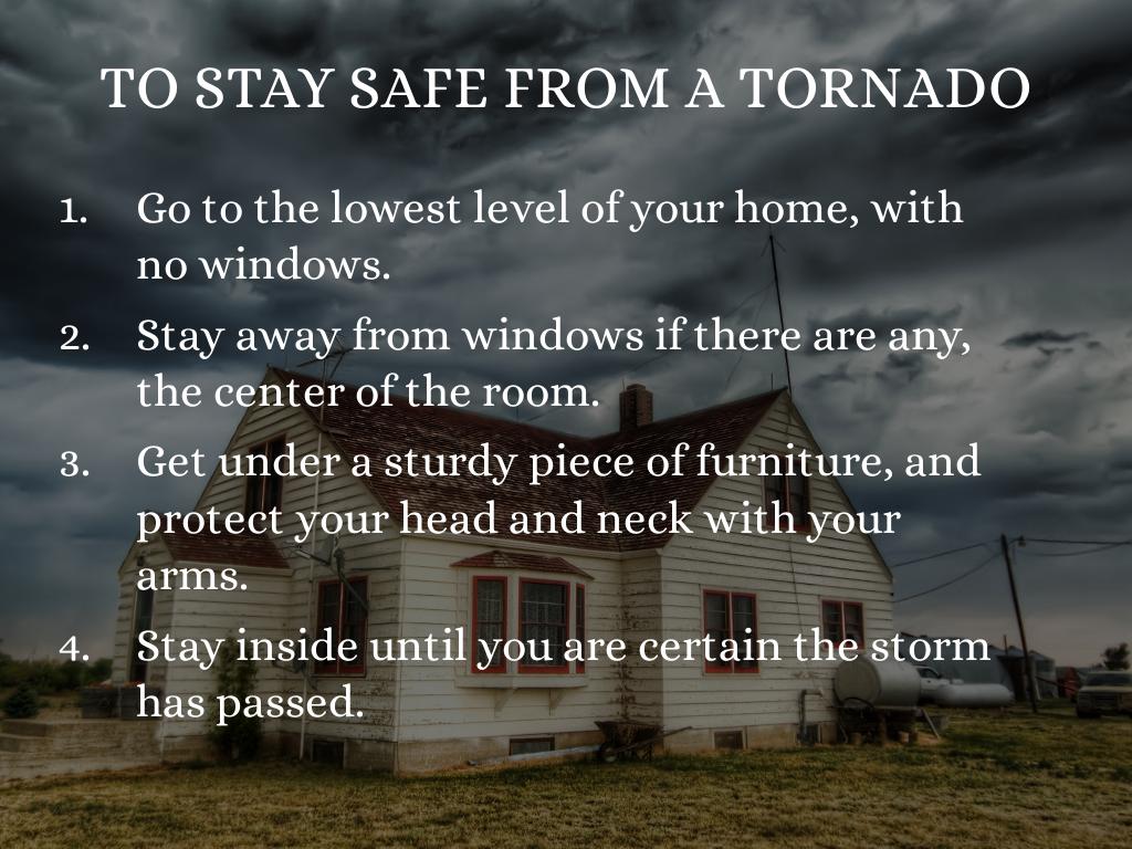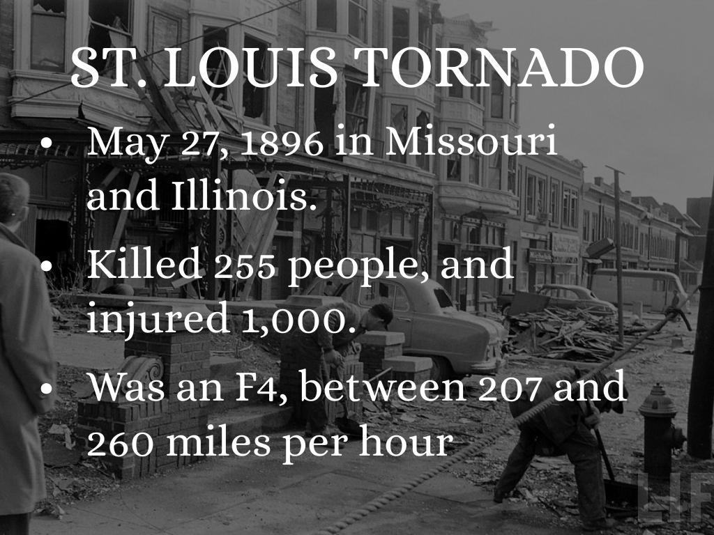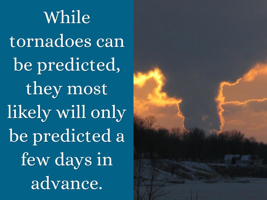 Tornadoes: Tornadoes form when the warm, moist air mass from the Gulf of Mexico, and the cool, dry air mass from Canada meet, and start a thunderstorm (or an instability in the atmosphere). They change in wind direction, and create an invisible and clockwise spinning effect.