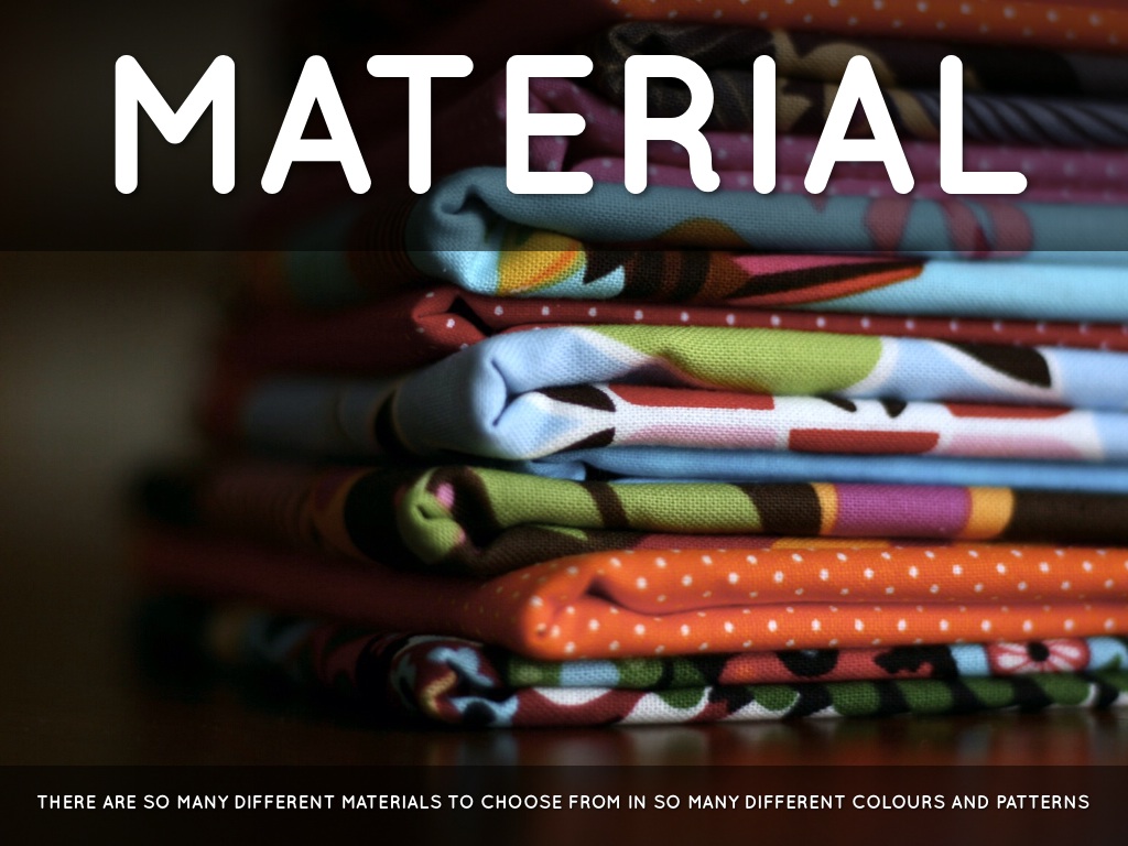 THERE ARE SO MANY DIFFERENT MATERIALS TO CHOOSE FROM IN SO MANY DIFFERENT COLOURS AND PATTERNS