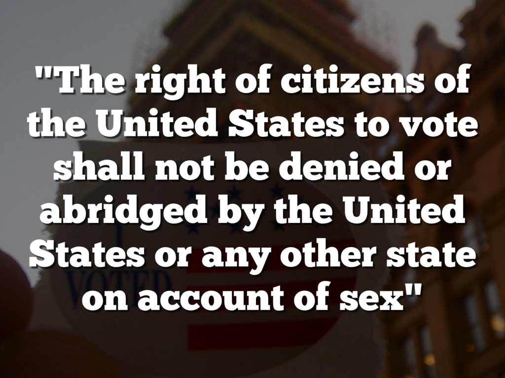 "The right of citizens of the United States to vote shall not be denied or abridged by the United States or any other state on account of sex"