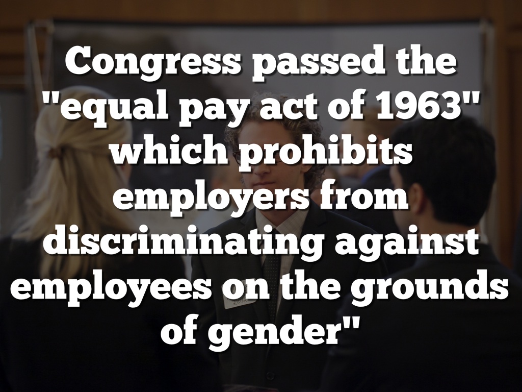 Congress passed the "equal pay act of 1963" which prohibits employers from discriminating against employees on the grounds of gender"