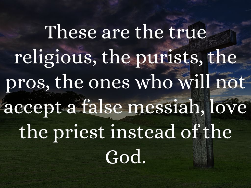 These are the true religious, the purists, the pros, the ones who will not accept a false messiah, love the priest instead of the God.