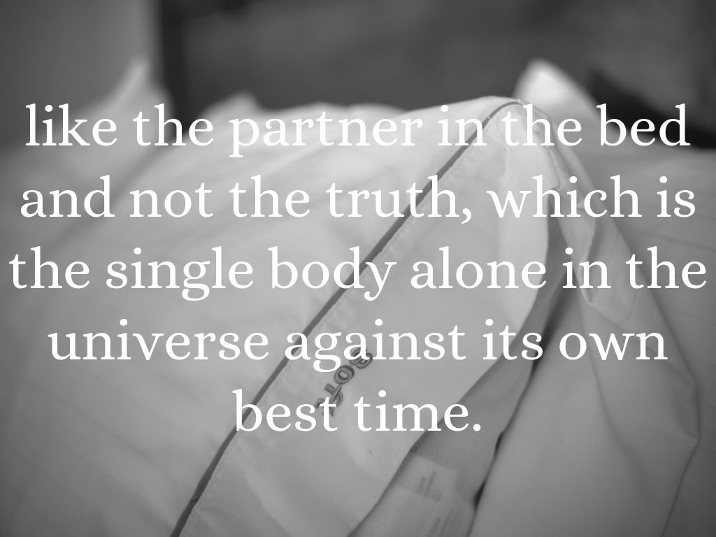 like the partner in the bed and not the truth, which is the single body alone in the universe against its own best time.