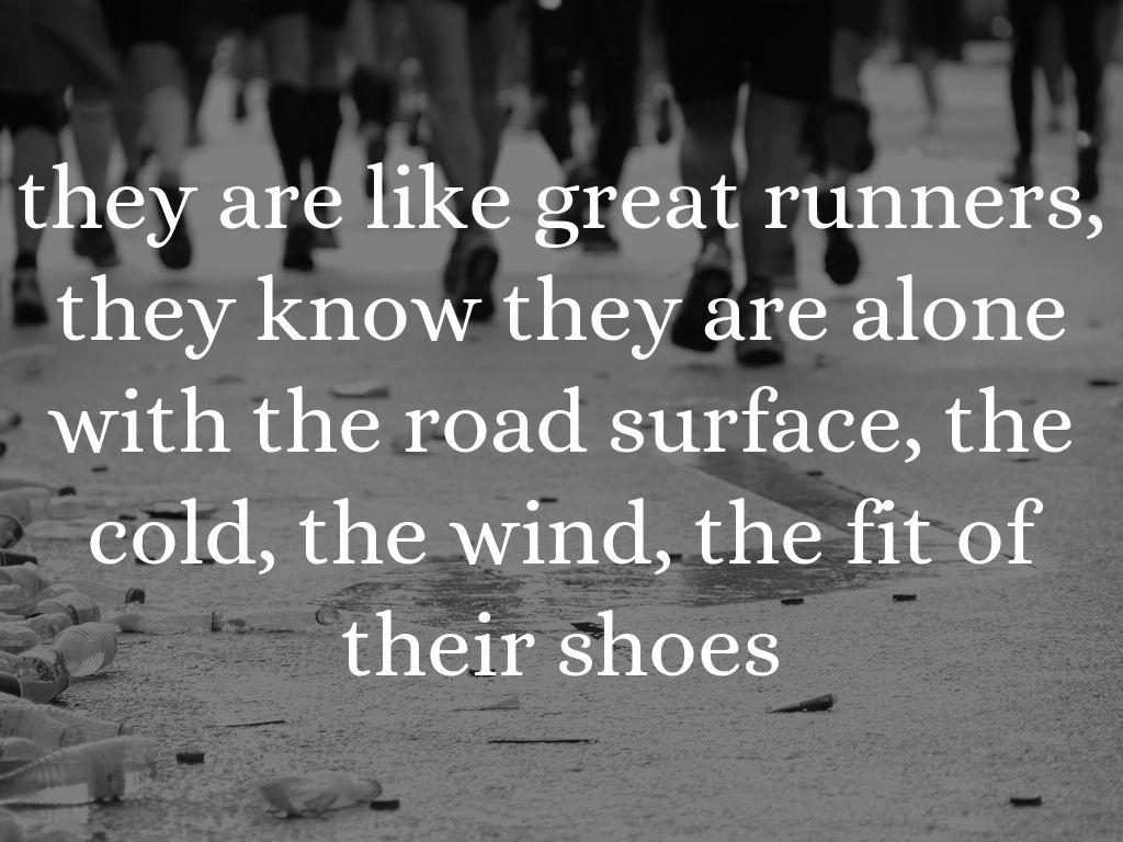 they are like great runners, they know they are alone with the road surface, the cold, the wind, the fit of their shoes