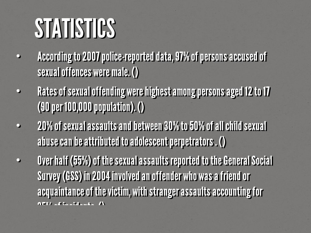 50% of incarcerated adults who have sexually offended report that they began offending when they were teenagers, and 25% of sexual offences in Canada are committed by teenagers ()