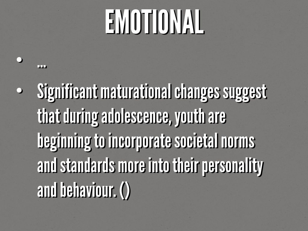 Significant maturational changes suggest that during adolescence, youth are beginning to incorporate societal norms and standards more into their personality and behaviour. ()