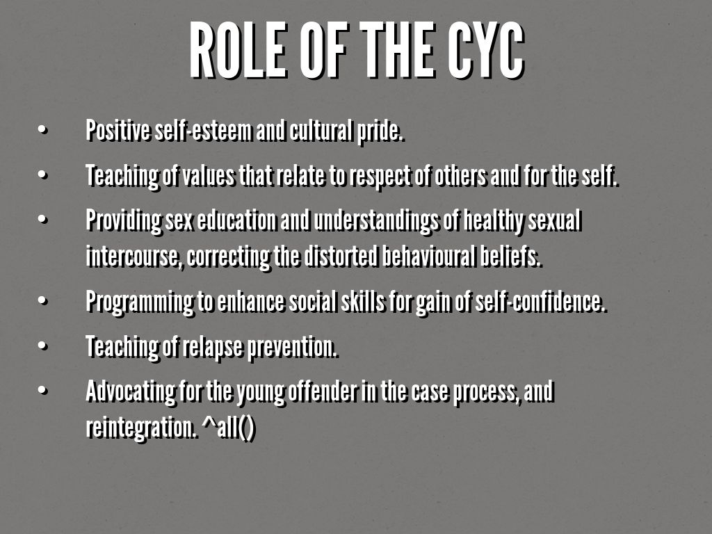 Juvenile sex offenders will need to go through a lot of treatment. This typically includes, individual, group, and family therapies. Youth that display behavioural problems (e.g., substance abuse) may require additional therapies. All youth programs in the agency provide case management and professional oversight. ()