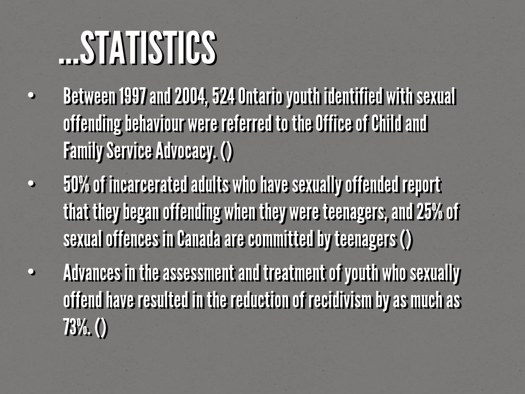 Between 1997 and 2004, 524 Ontario youth identified with sexual offending behaviour were referred to the Office of Child and Family Service Advocacy. ()