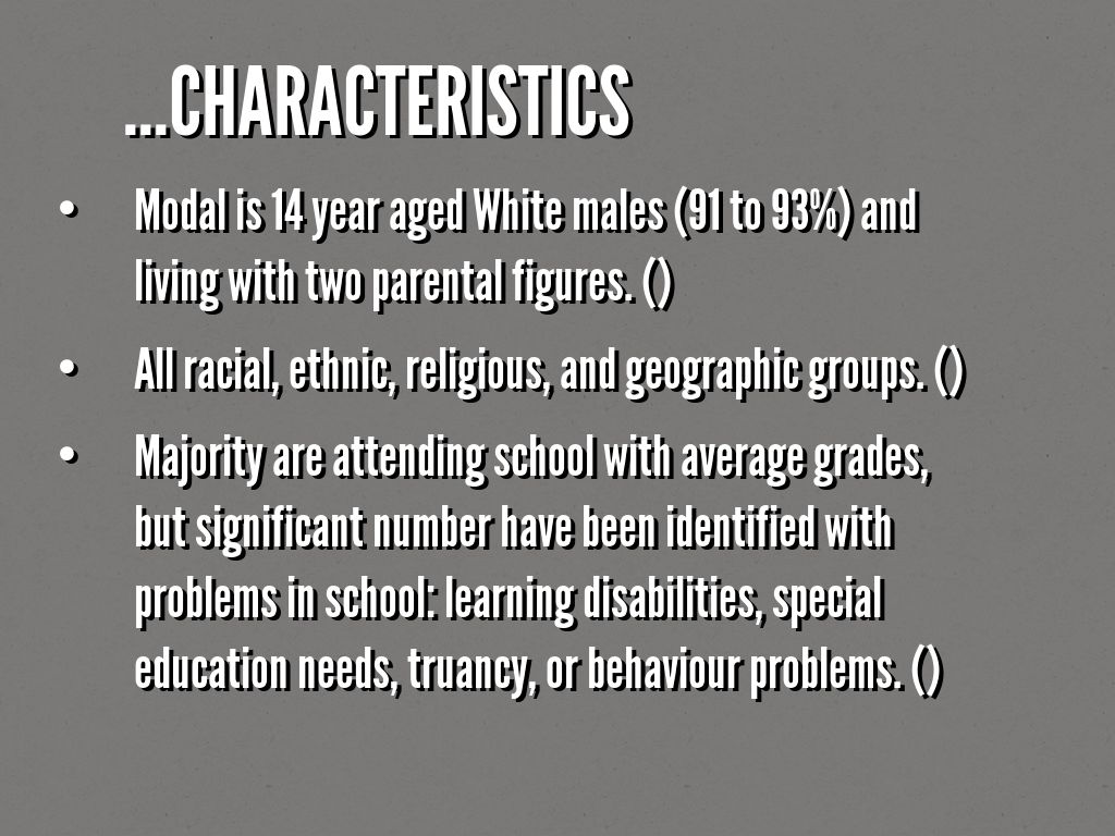 Modal is 14 year aged White males (91 to 93%) and living with two parental figures. ()