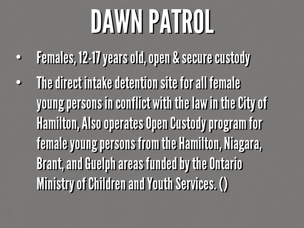 The direct intake detention site for all female young persons in conflict with the law in the City of Hamilton, Also operates Open Custody program for female young persons from the Hamilton, Niagara, Brant, and Guelph areas funded by the Ontario Ministry of Children and Youth Services. ()