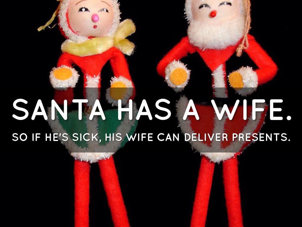 SO IF HE'S SICK, HIS WIFE CAN DELIVER PRESENTS.