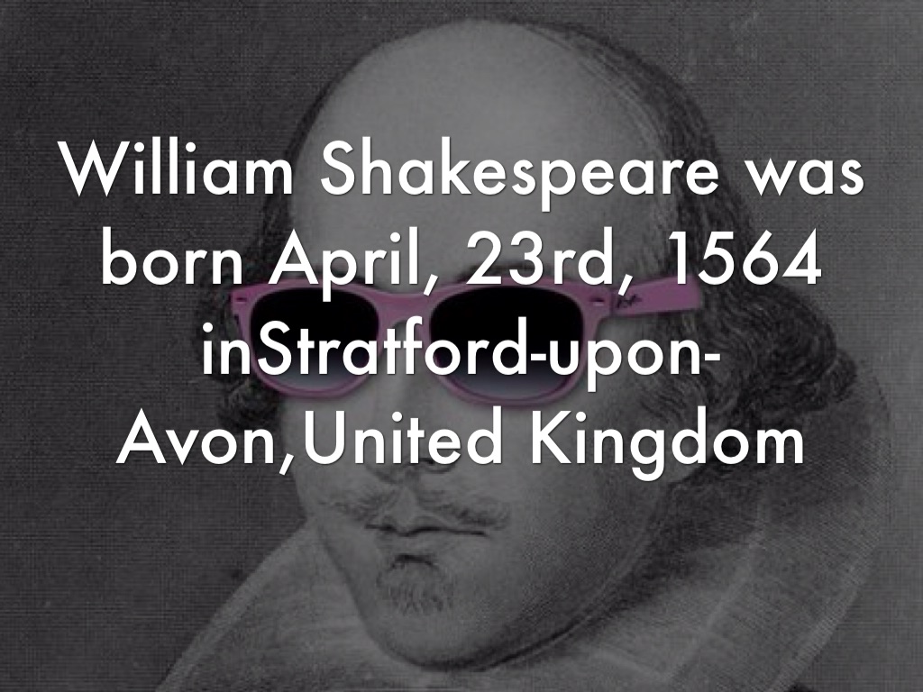 William Shakespeare was born April, 23rd, 1564 inStratford-upon-Avon,United Kingdom