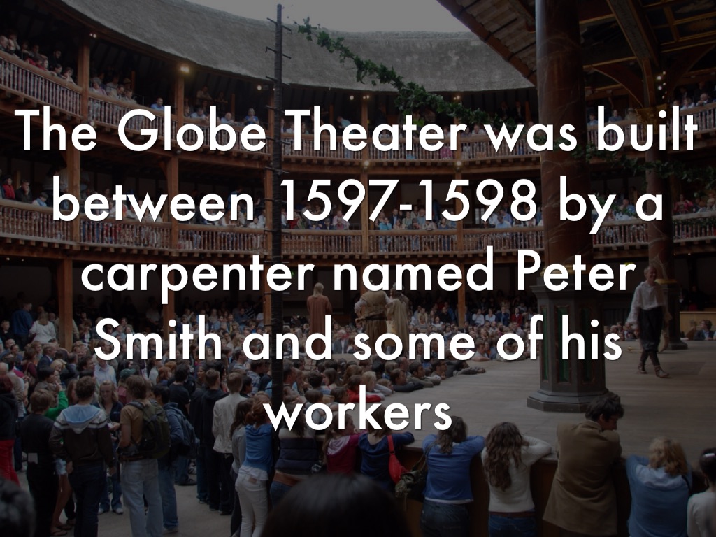 The Globe Theater was built between 1597-1598 by a carpenter named Peter Smith and some of his workers