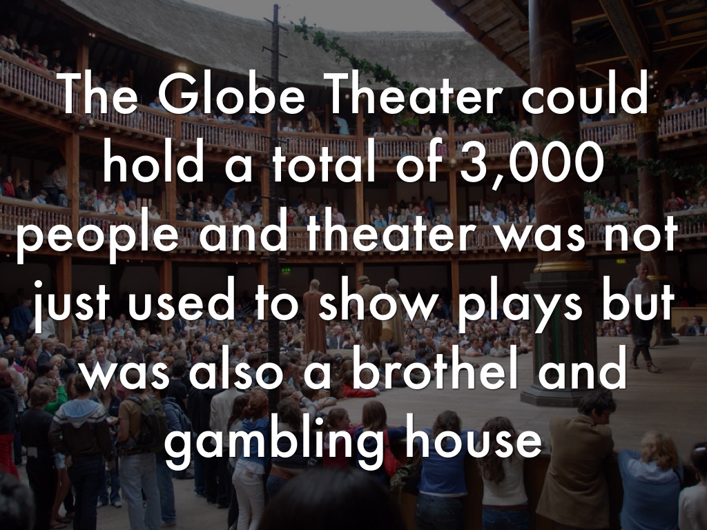 The Globe Theater could hold a total of 3,000 people and theater was not just used to show plays but was also a brothel and gambling house