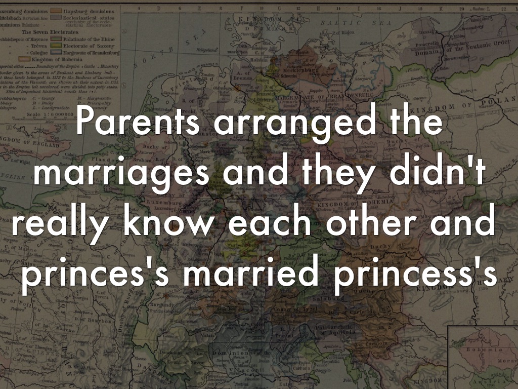 Parents arranged the marriages and they didn't really know each other and princes's married princess's