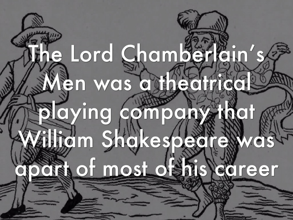 The Lord Chamberlain’s Men was a theatrical playing company that William Shakespeare was apart of most of his career