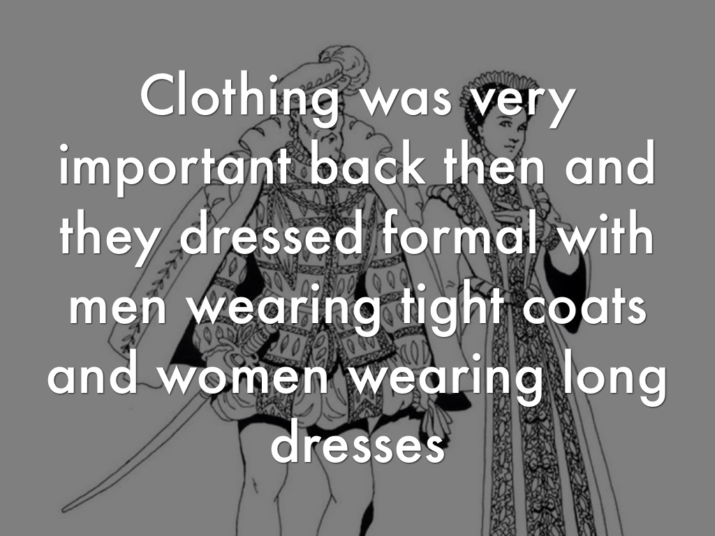 Clothing was very important back then and they dressed formal with men wearing tight coats and women wearing long dresses