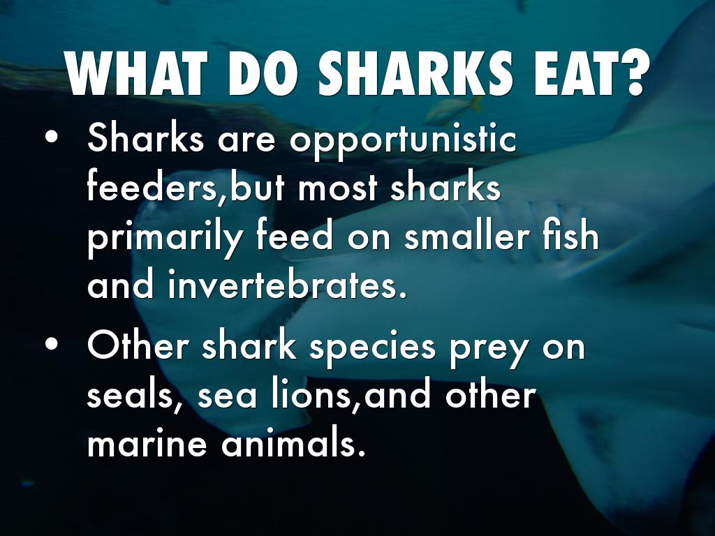 Sharks are opportunistic feeders,but most sharks primarily feed on smaller fish and invertebrates.