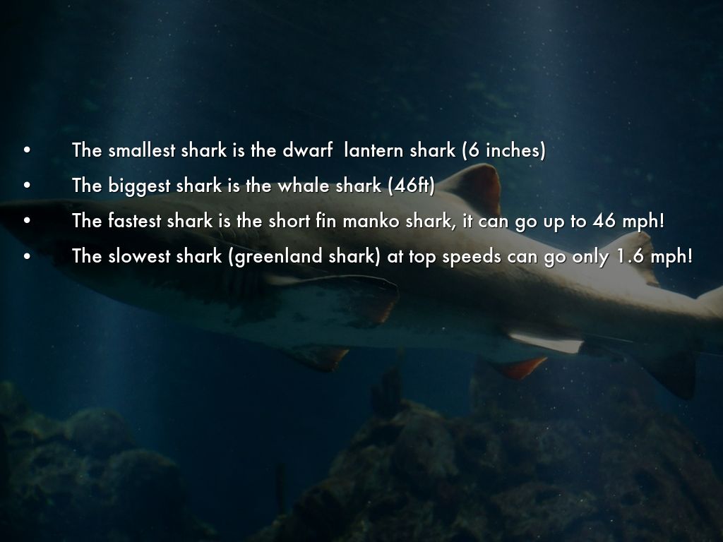 • The slowest shark (greenland shark) at top speeds can go only 1.6 mph!