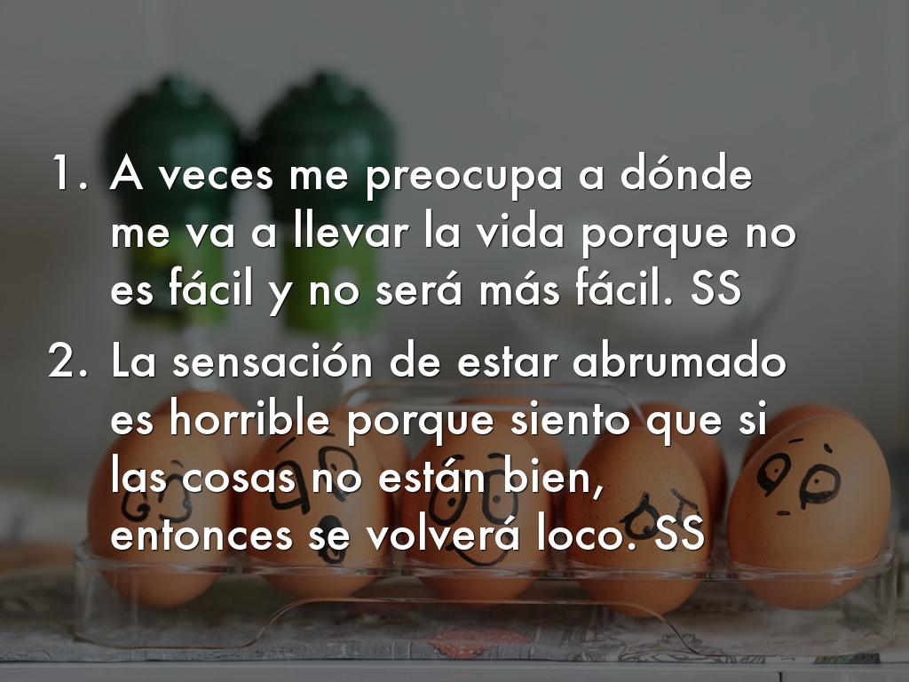 La sensación de estar abrumado es horrible porque siento que si las cosas no están bien, entonces se volverá loco. SS