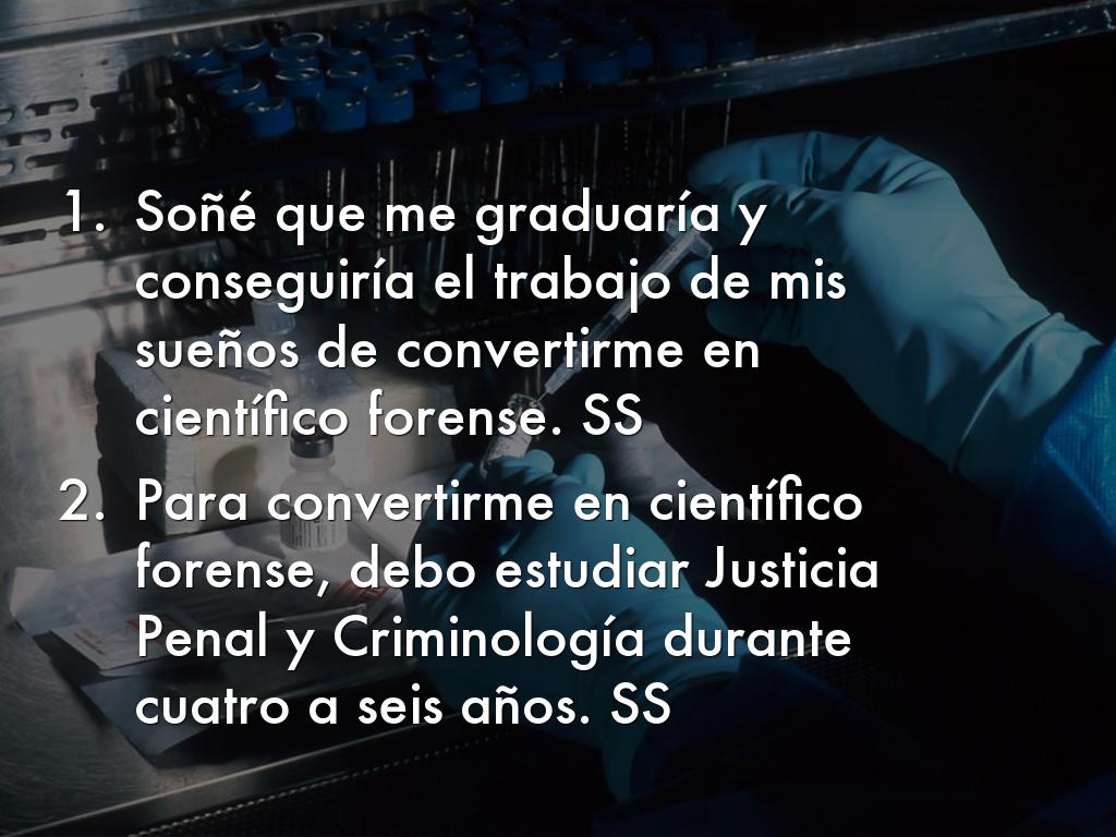 Para convertirme en científico forense, debo estudiar Justicia Penal y Criminología durante cuatro a seis años. SS