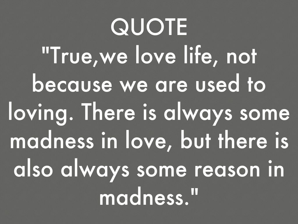 "True,we love life, not because we are used to loving. There is always some madness in love, but there is also always some reason in madness."