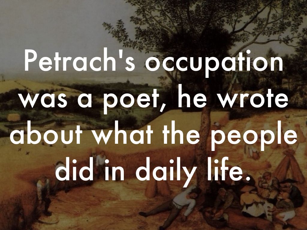 Petrach's occupation was a poet, he wrote about what the people did in daily life.