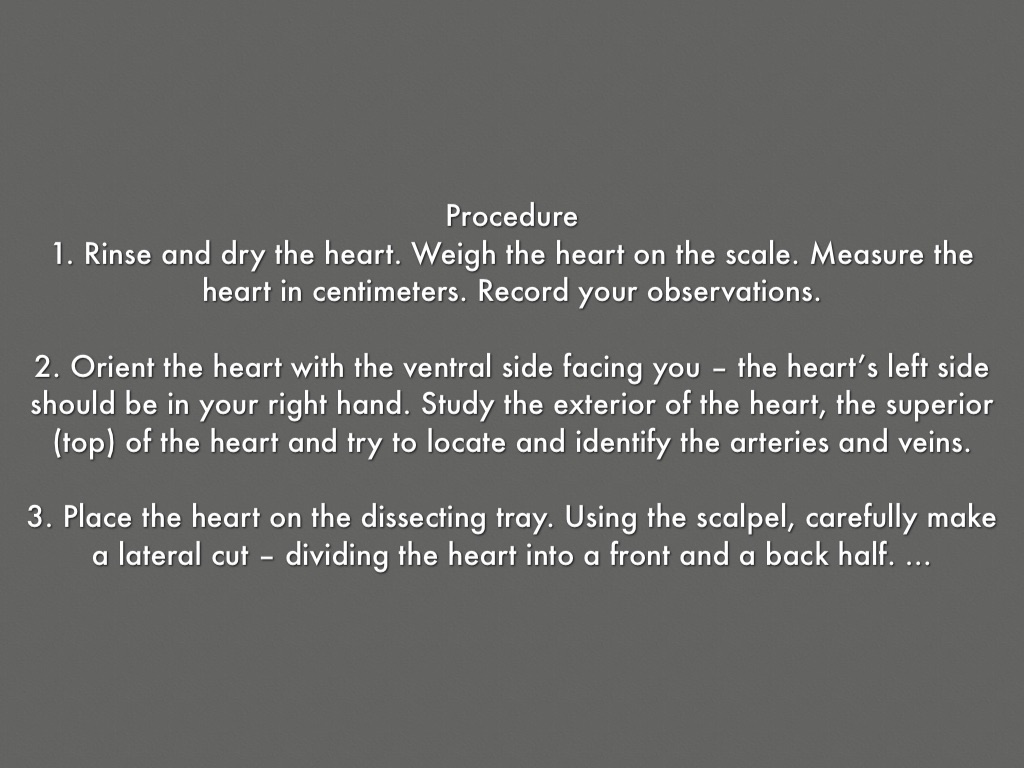1. Rinse and dry the heart. Weigh the heart on the scale. Measure the heart in centimeters. Record your observations.