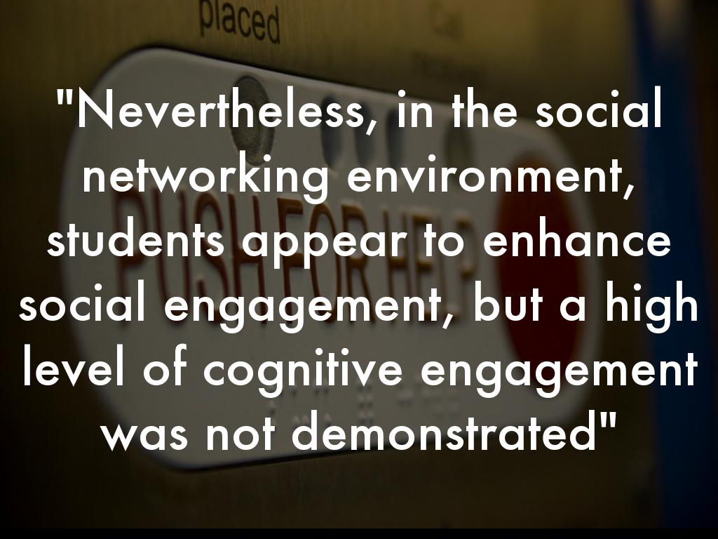"Nevertheless, in the social networking environment, students appear to enhance social engagement, but a high level of cognitive engagement was not demonstrated"