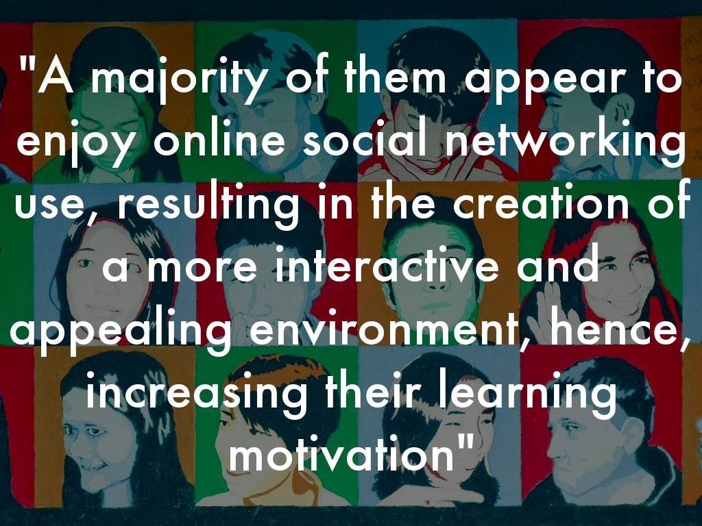 "A majority of them appear to enjoy online social networking use, resulting in the creation of a more interactive and appealing environment, hence, increasing their learning motivation"