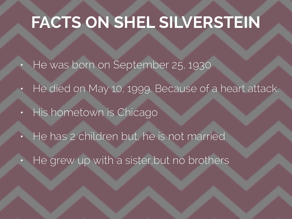 The only reason I picked Shel Silverstein is because,he loves to write poetry and my favorite thing in reading is poetry.