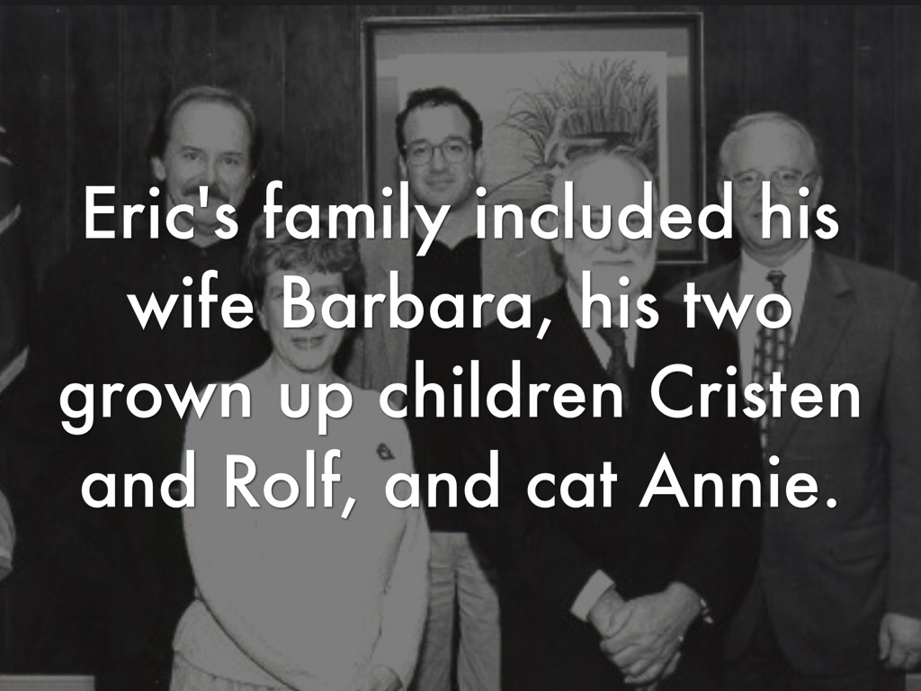 Eric's family included his wife Barbara, his two grown up children Cristen and Rolf, and cat Annie.